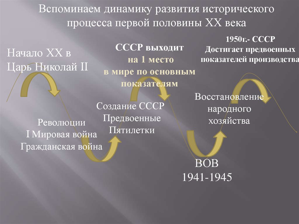 Вспоминаем динамику развития историческогопроцесса первой половины ХХ века