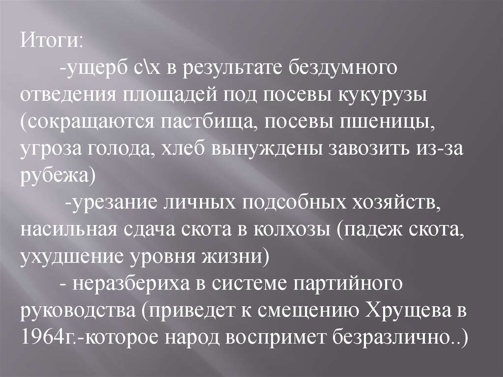 Итоги:-ущерб с\х в результате бездумного