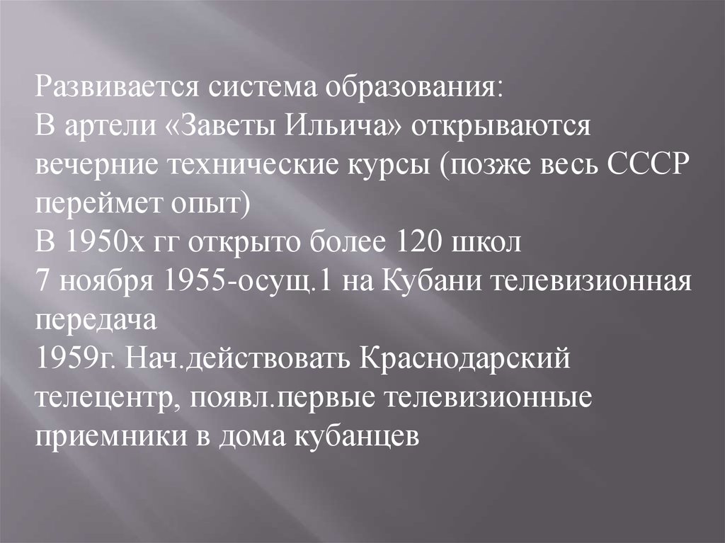 7 ноября 1955-осущ.1 на Кубани телевизионная