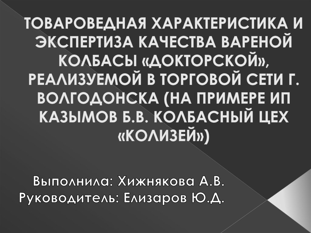 1. ТОВАРОВЕДНАЯ ХАРАКТЕРИСТИКА И ЭКСПЕРТИЗА КАЧЕСТВА ВАРЕНОЙ КОЛБАСЫ «ДОКТОРСКОЙ», РЕАЛИЗУЕМОЙ В ТОРГОВОЙ СЕТИ Г. ВОЛГОДОНСКА (НА ПРИМЕРЕ ИП