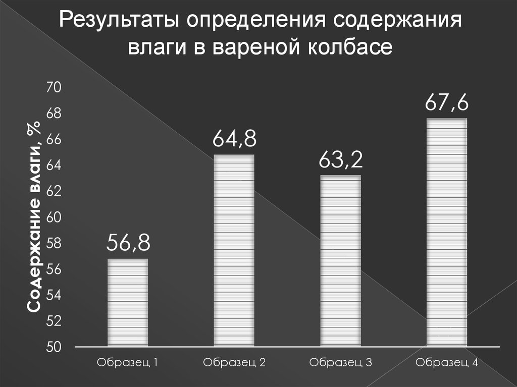 Результаты определения содержаниявлаги в вареной колбасе