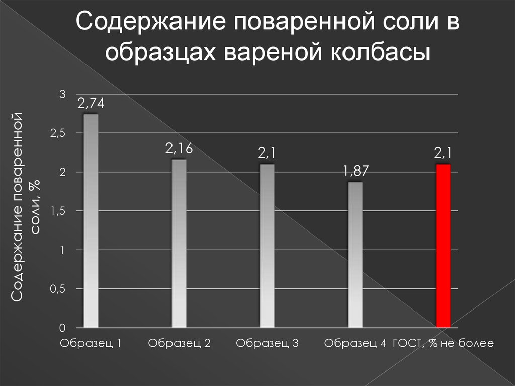 Содержание поваренной соли вобразцах вареной колбасы