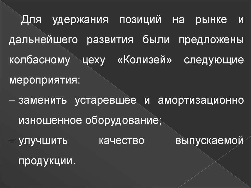 Для удержания позиций на рынке идальнейшего развития были предложены
