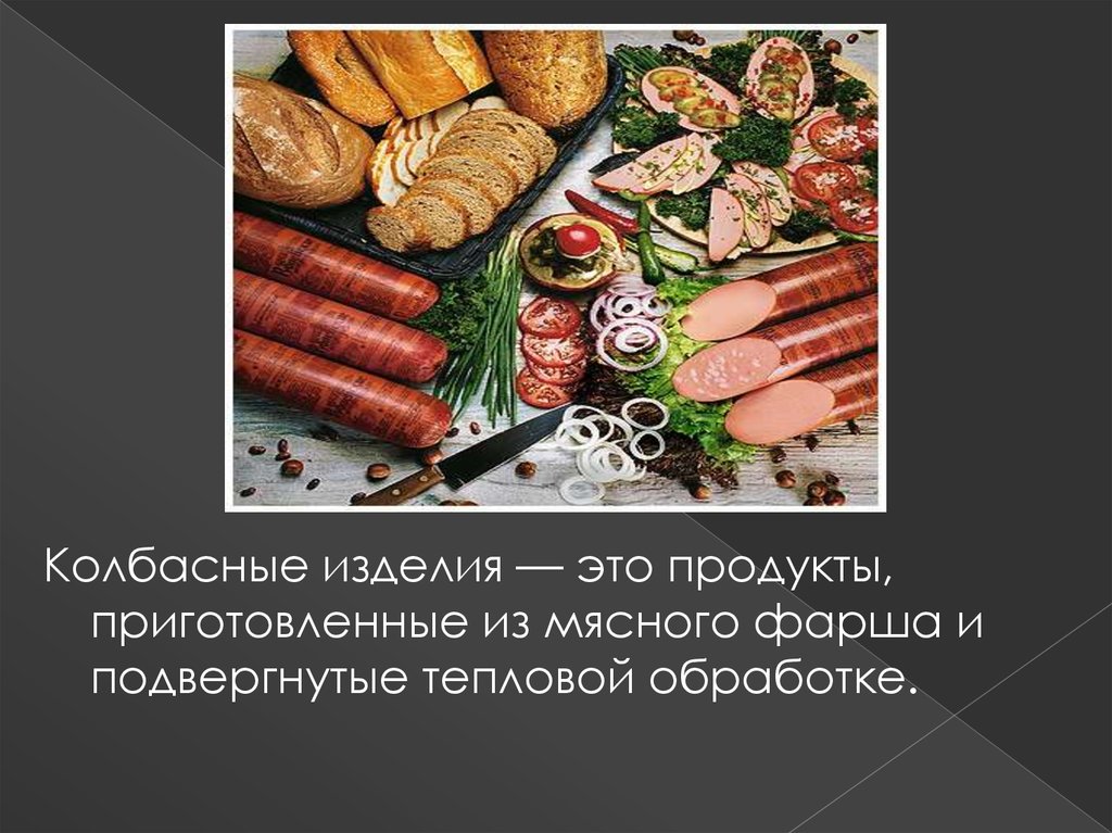 Колбасные изделия — это продукты,приготовленные из мясного фарша и
