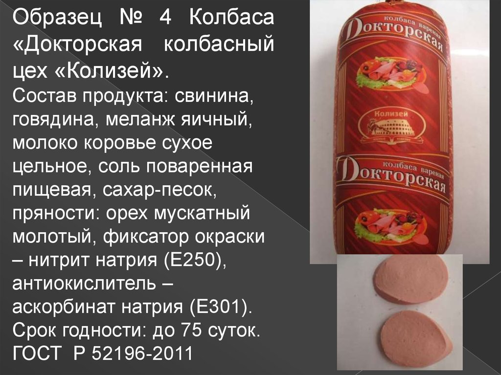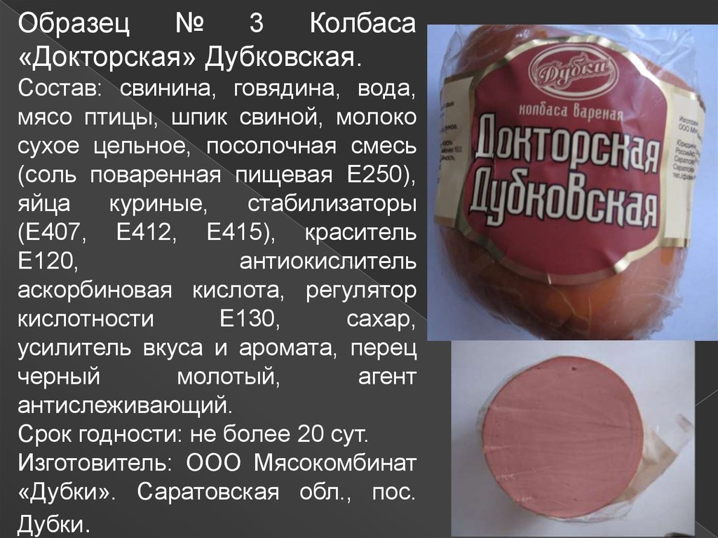 Образец № 2 Колбаса«Докторская» ООО «Элита.