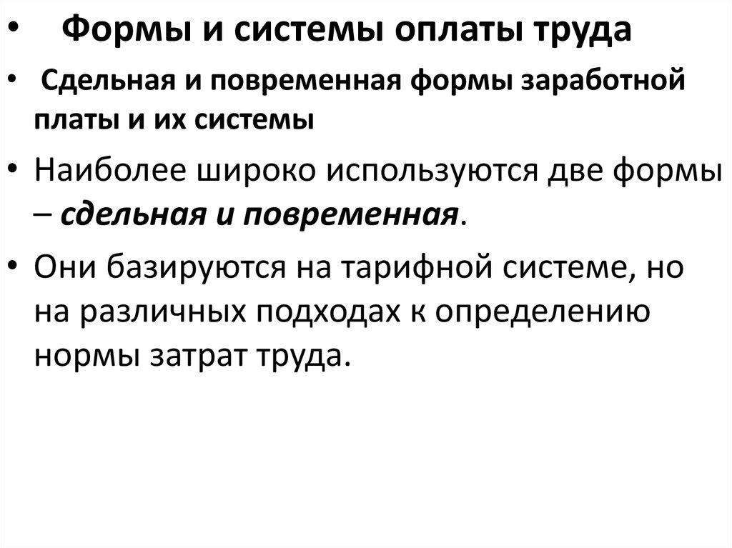 • Сдельная – такая форма оплаты труда, прикоторой размер заработка работника