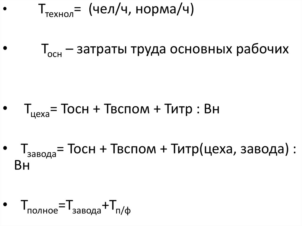 • Тзавода= Тосн + Твспом + Титр(цеха, завода) :