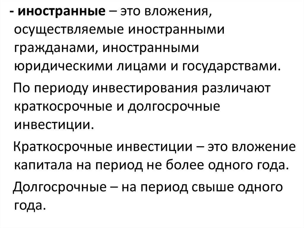 - инвестиции в создание новыхпроизводств – создаются совершенно