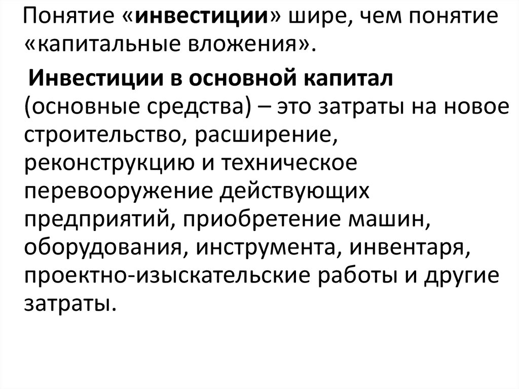 1. Инвестиции и инвестиционная деятельность предприятия. 1.Инвестиции: сущность, объекты, субъекты. 2. Капитальные вложения: сущность, состав и