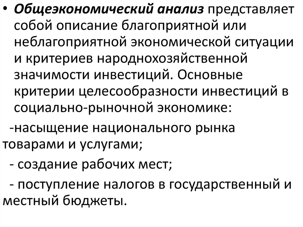 • Общеэкономический анализ представляетсобой описание благоприятной или