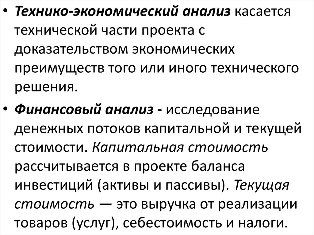 • Технико-экономический анализ касаетсятехнической части проекта с