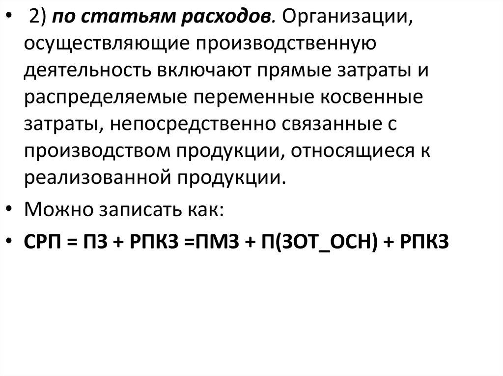 - расчетную – формирование цены на прод.;