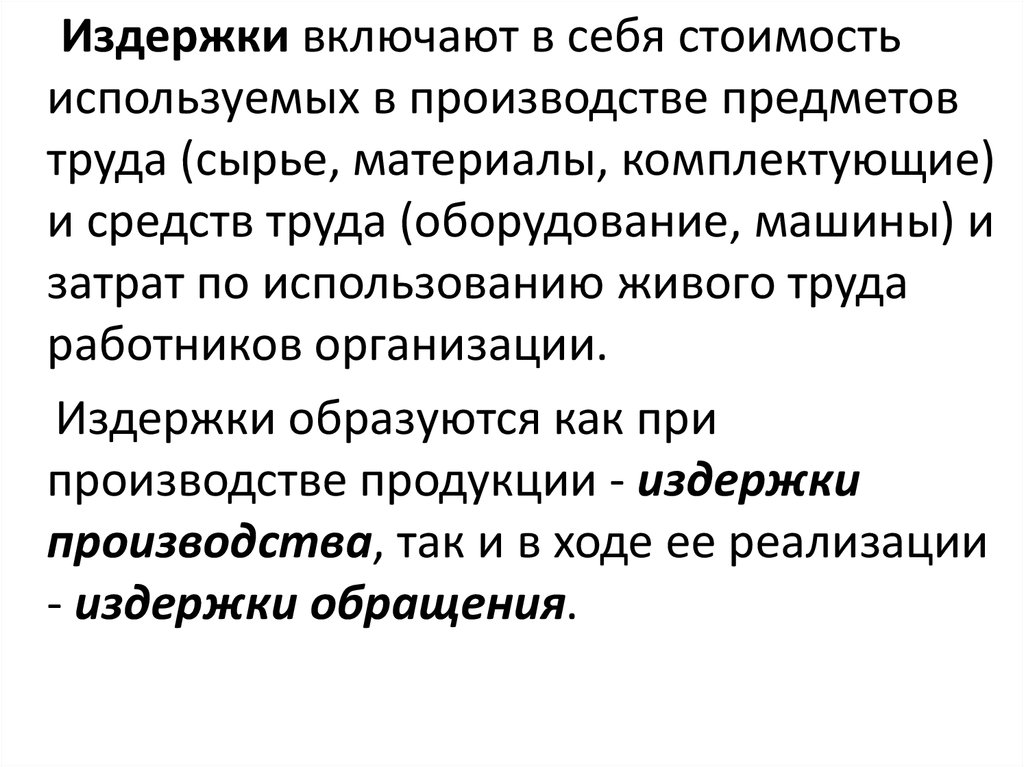 Издержки включают в себя стоимостьиспользуемых в производстве предметов