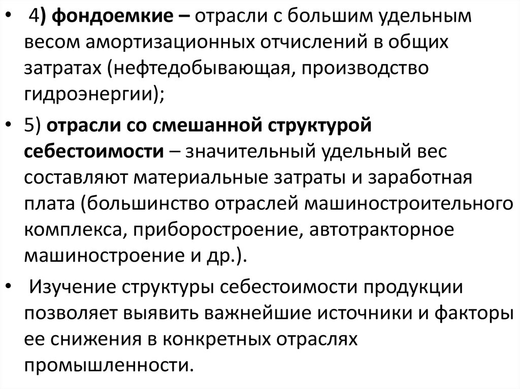 В зависимости от структуры себестоимостипродукции различают отрасли: