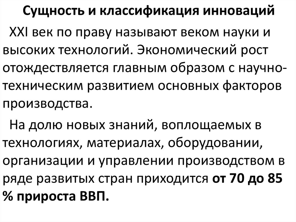 Сущность и классификация инновацийXXI век по праву называют веком науки и