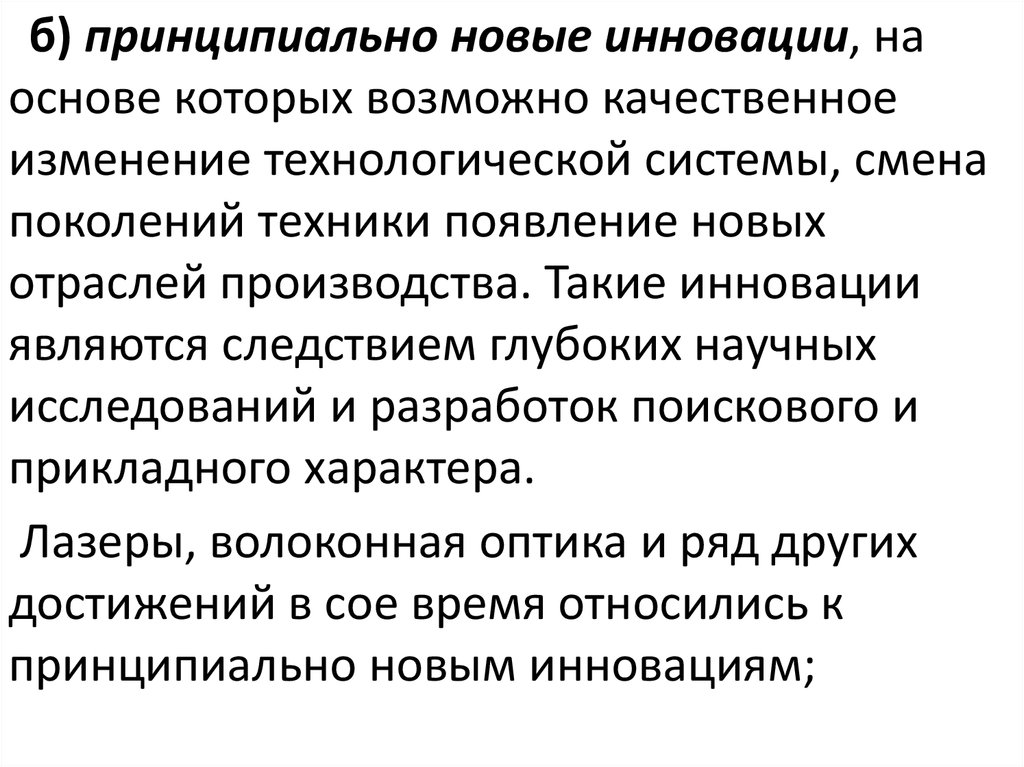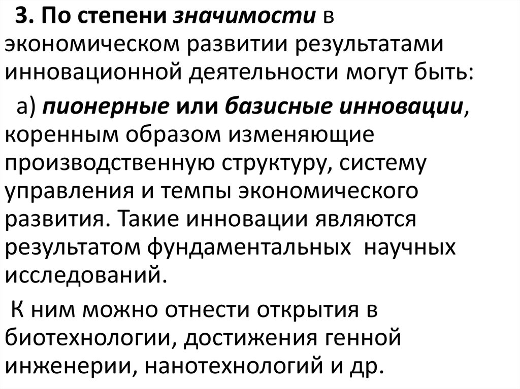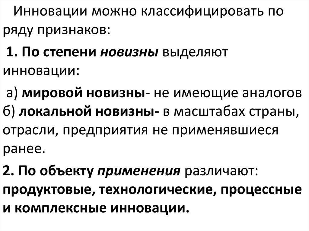Инновации можно классифицировать поряду признаков: