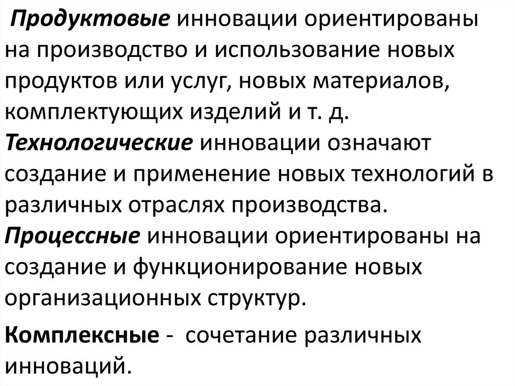 Виды новшеств: