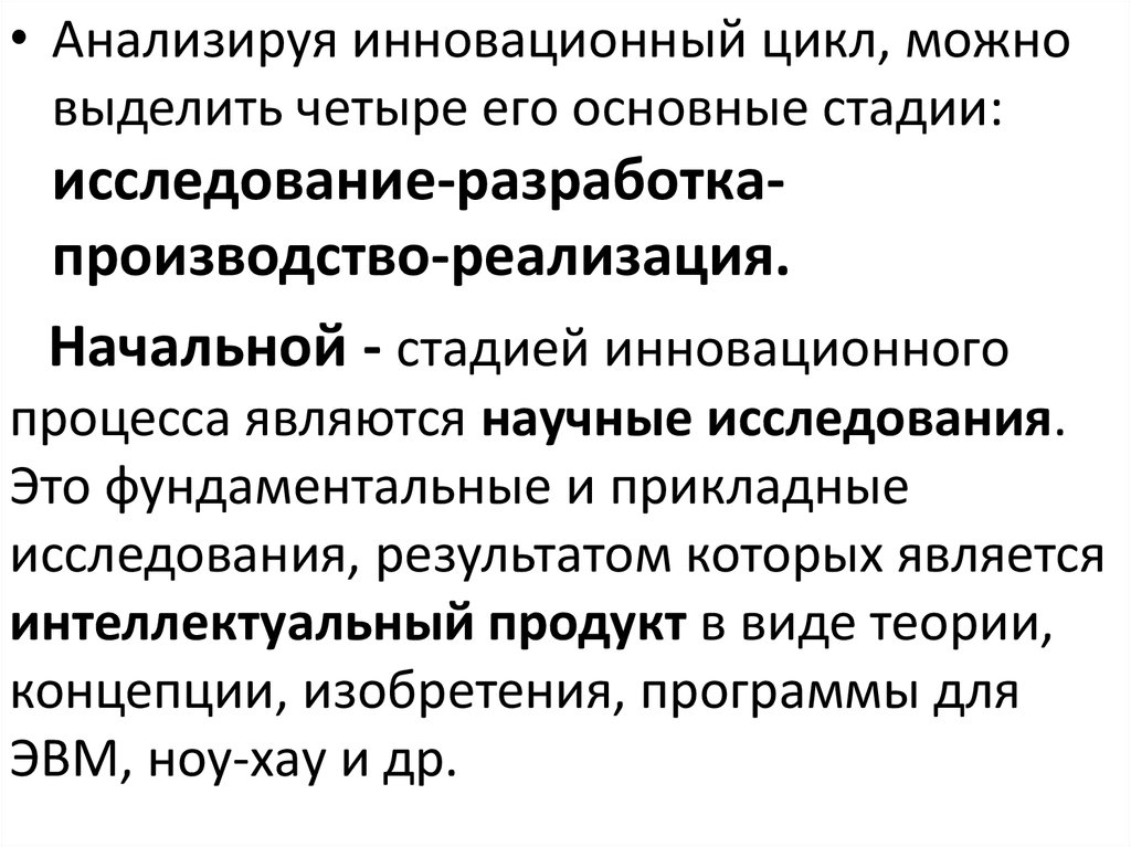 инновационного цикла вплоть до