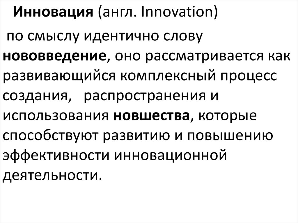 Инновация (англ. Innovation)по смыслу идентично слову