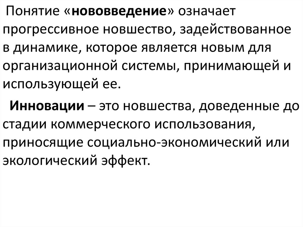 Понятие «нововведение» означаетпрогрессивное новшество, задействованное