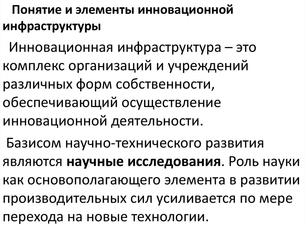 Понятие и элементы инновационнойинфраструктуры