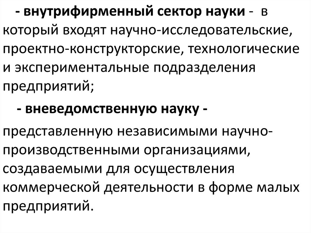 - внутрифирменный сектор науки - вкоторый входят научно-исследовательские,