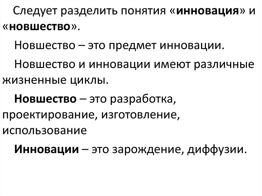 Следует разделить понятия «инновация» и«новшество».