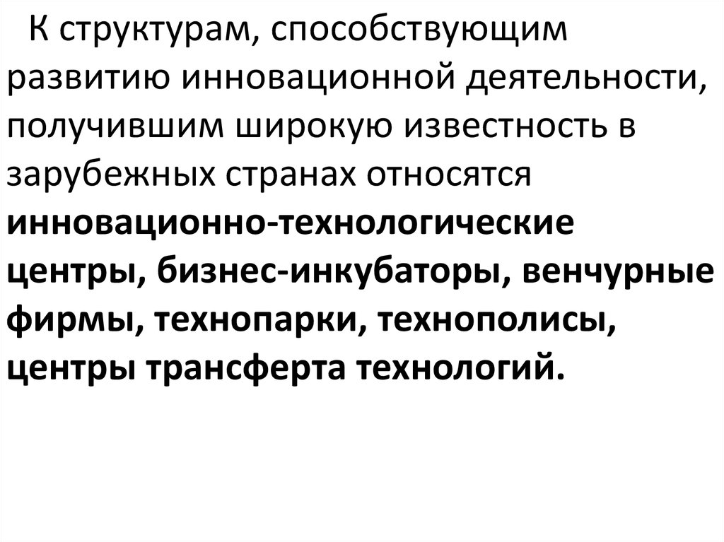 К структурам, способствующимразвитию инновационной деятельности,