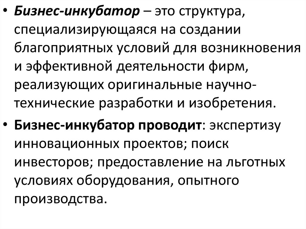 • Бизнес-инкубатор – это структура,специализирующаяся на создании