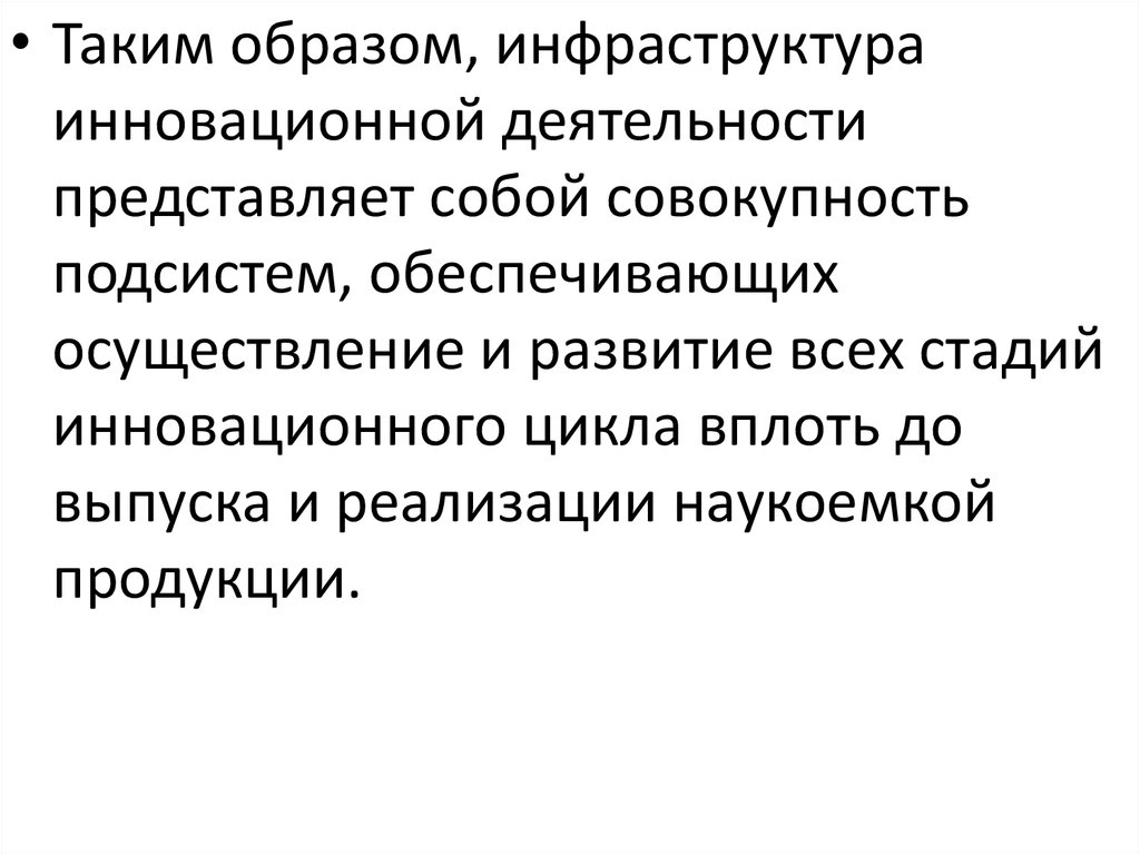 • Таким образом, инфраструктураинновационной деятельности