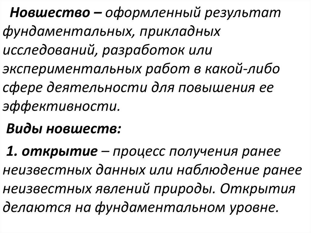 Новшество – оформленный результатфундаментальных, прикладных