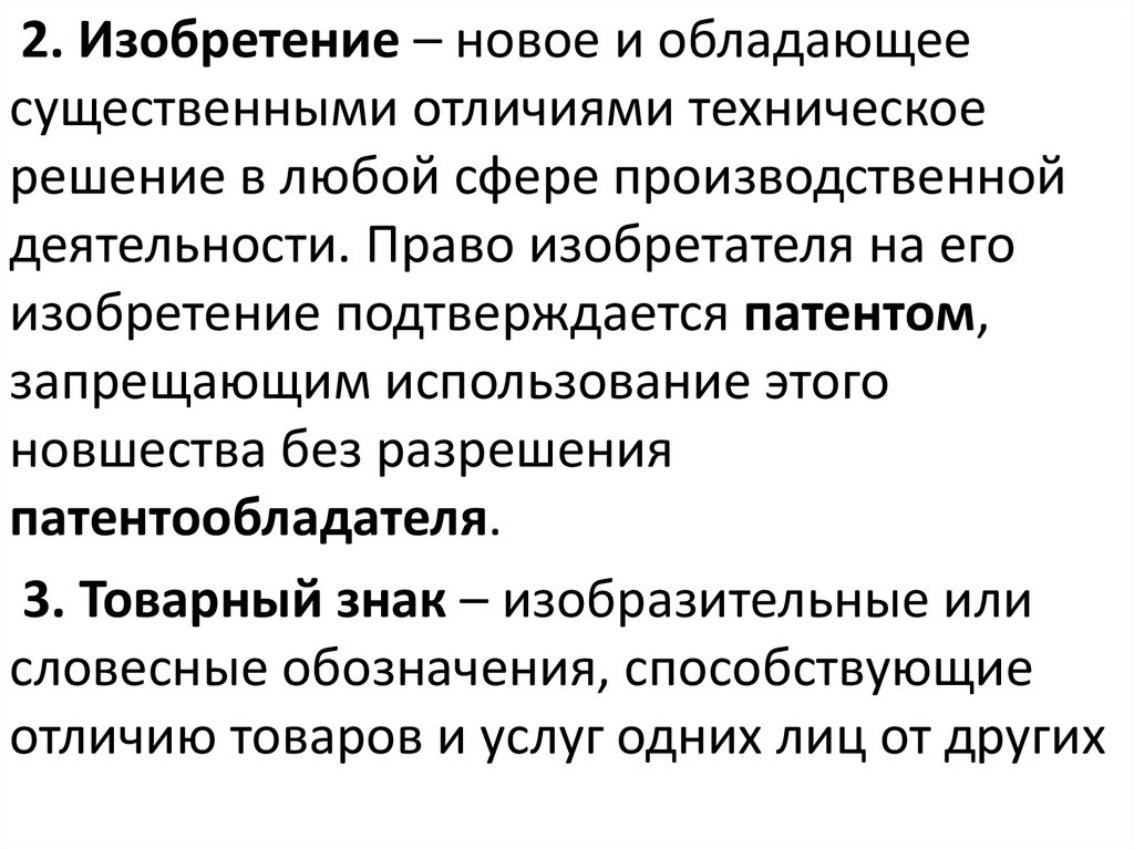 2. Изобретение – новое и обладающеесущественными отличиями техническое