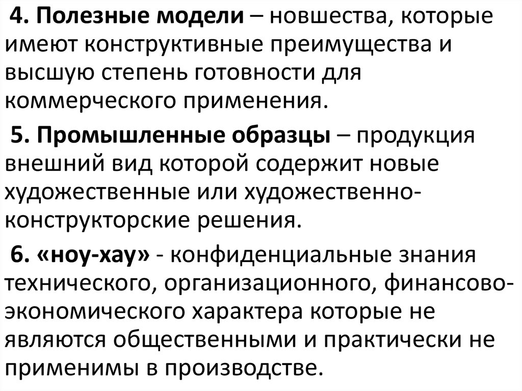 4. Полезные модели – новшества, которыеимеют конструктивные преимущества и