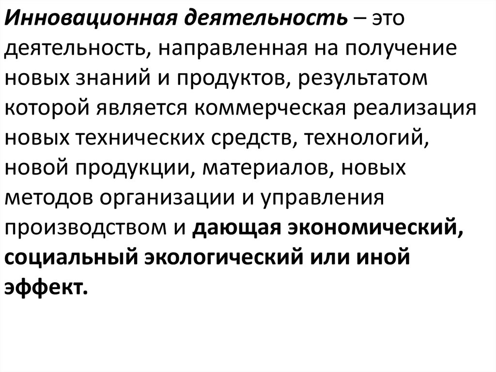 Инновационная деятельность – этодеятельность, направленная на получение