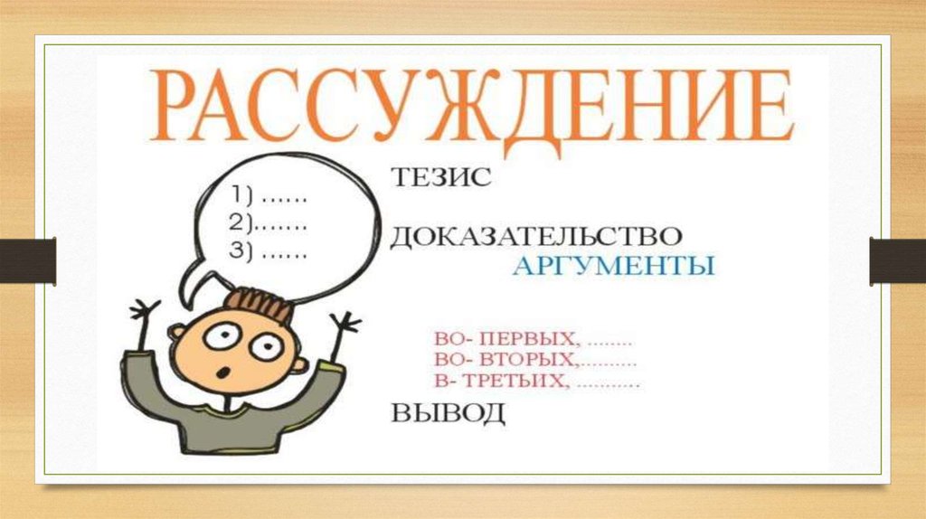 • Рассуждение – это словесное изложение, разъяснение, подтверждениекакой-либо мысли.