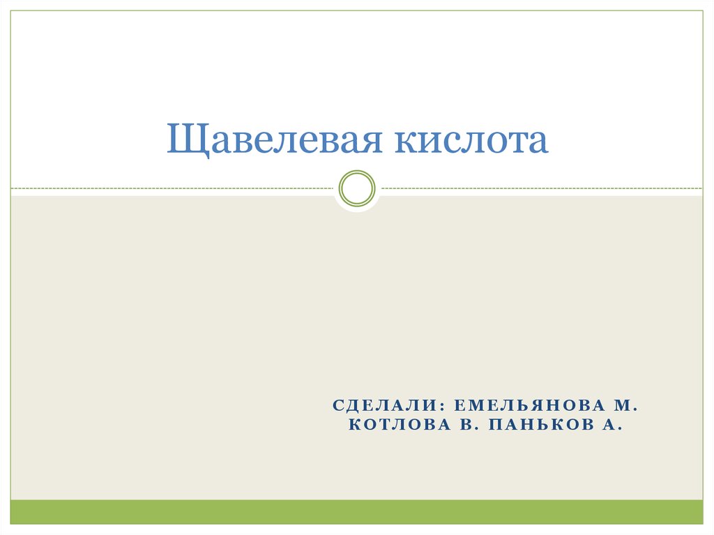 Щавелевая кислота (этандиовая) – двухосновноекарбоновое соединение, принадлежащее к классу