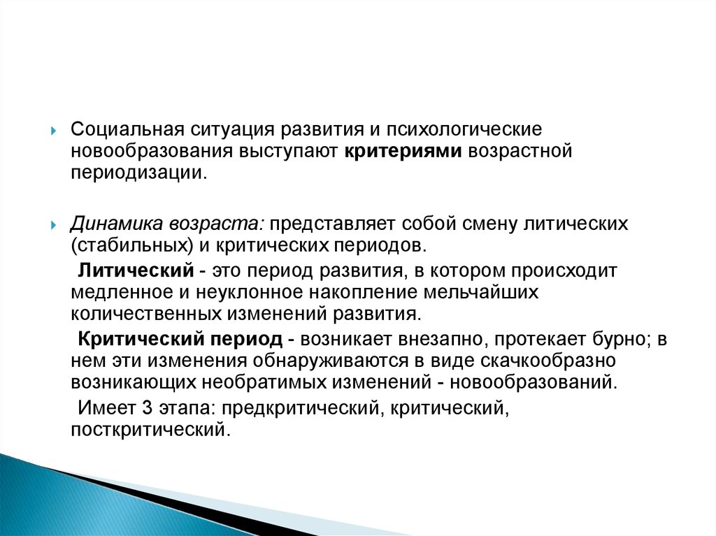 Социальная ситуация развития и психологическиеновообразования выступают критериями возрастной