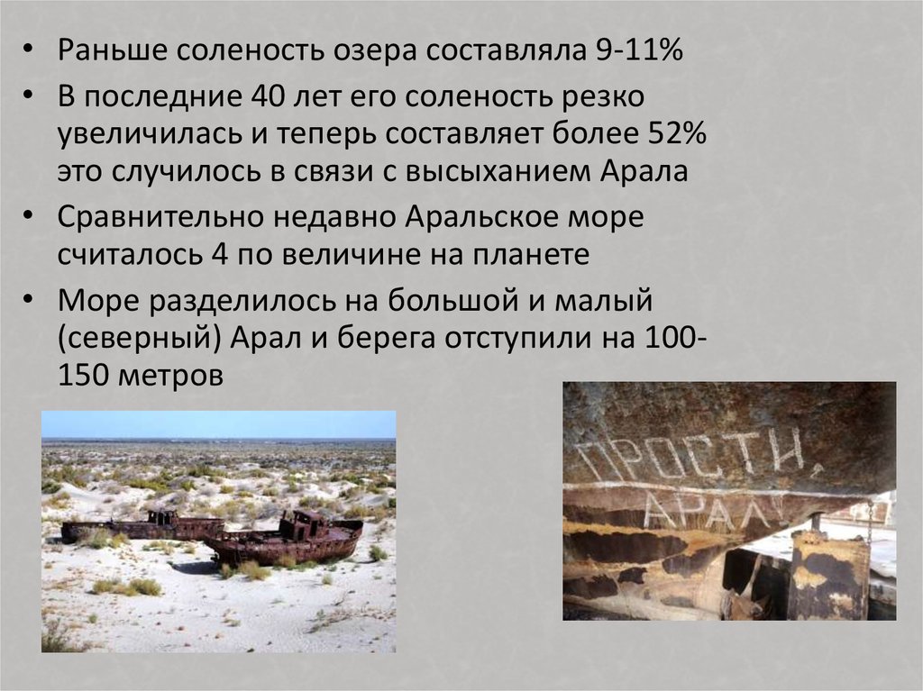 • Раньше соленость озера составляла 9-11%• В последние 40 лет его соленость резко