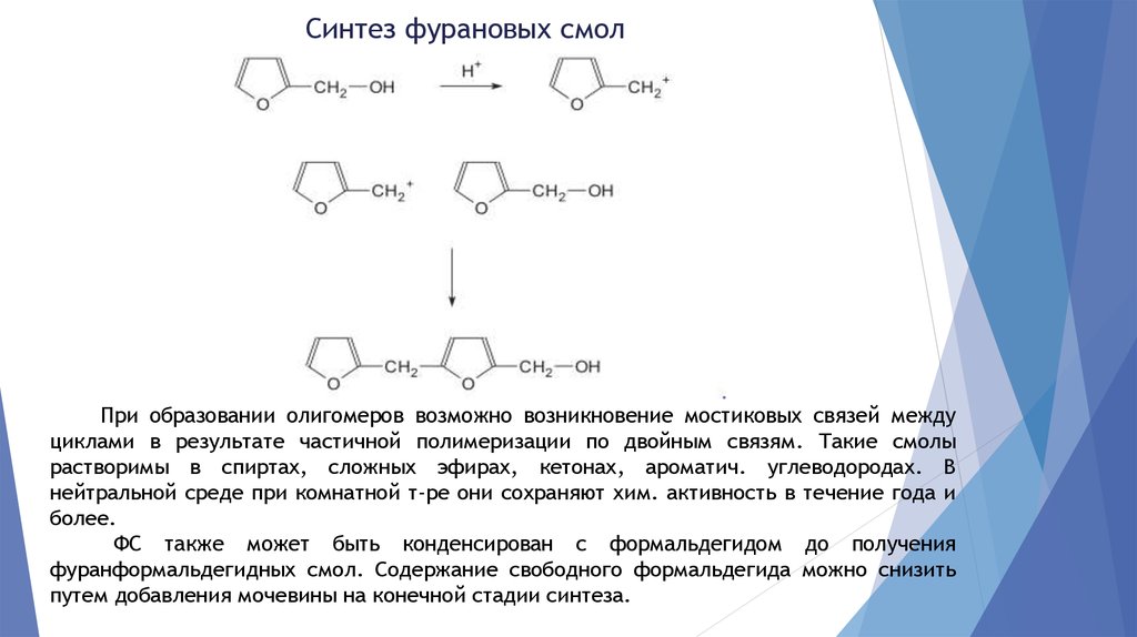 Синтез фурановых смолПри образовании олигомеров возможно возникновение мостиковых связей между
