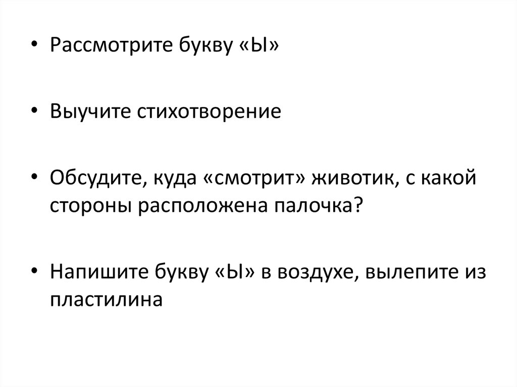 • Рассмотрите букву «Ы»• Выучите стихотворение