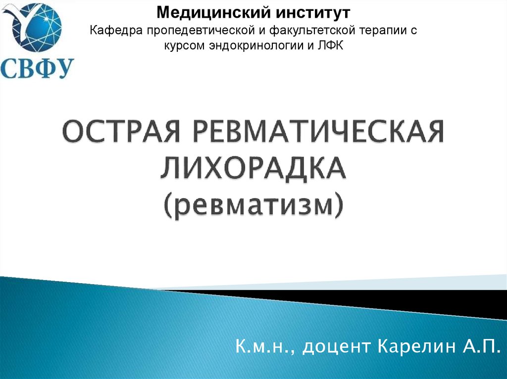 1. ОСТРАЯ РЕВМАТИЧЕСКАЯ ЛИХОРАДКА (ревматизм)