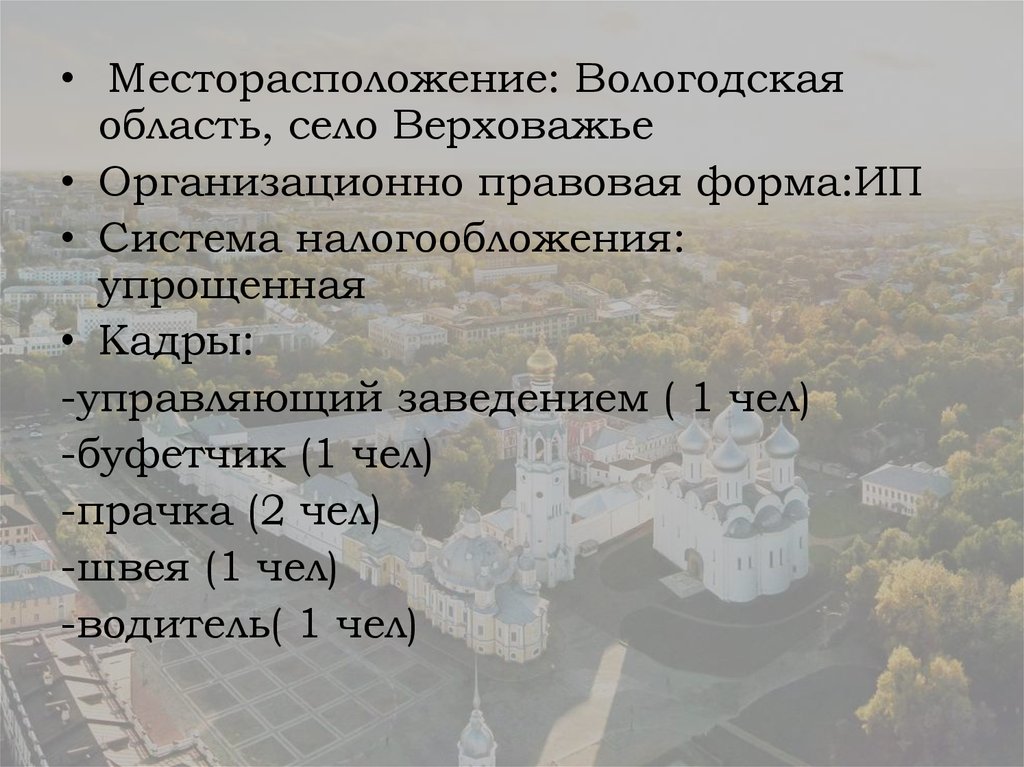 • Месторасположение: Вологодскаяобласть, село Верховажье