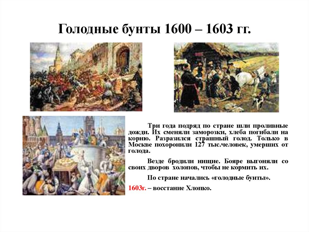 Голодные бунты 1600 – 1603 гг.Три года подряд по стране шли проливные