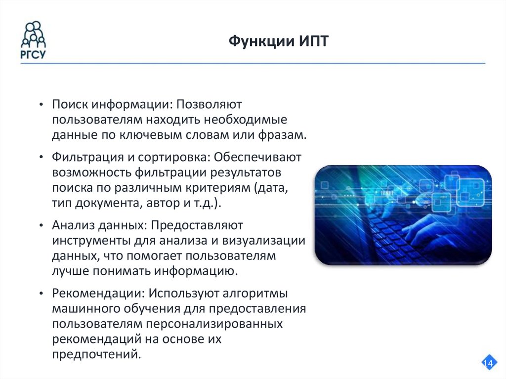 Функции ИПТ• Поиск информации: Позволяют