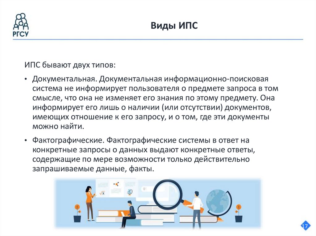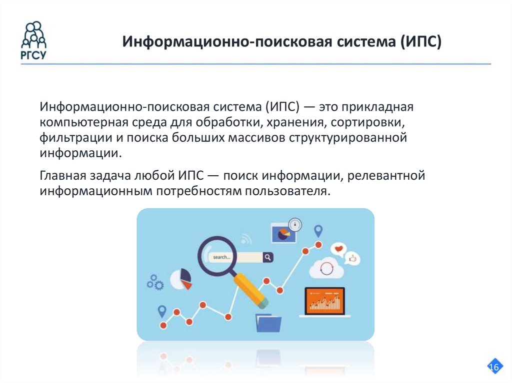 • Информационно-поисковые системы (ИПС). Выполняют поиск