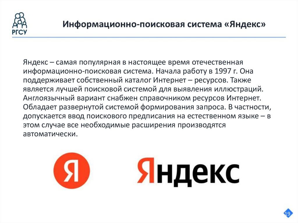 Информационно-поисковая система «Яндекс»Яндекс – самая популярная в настоящее время отечественная