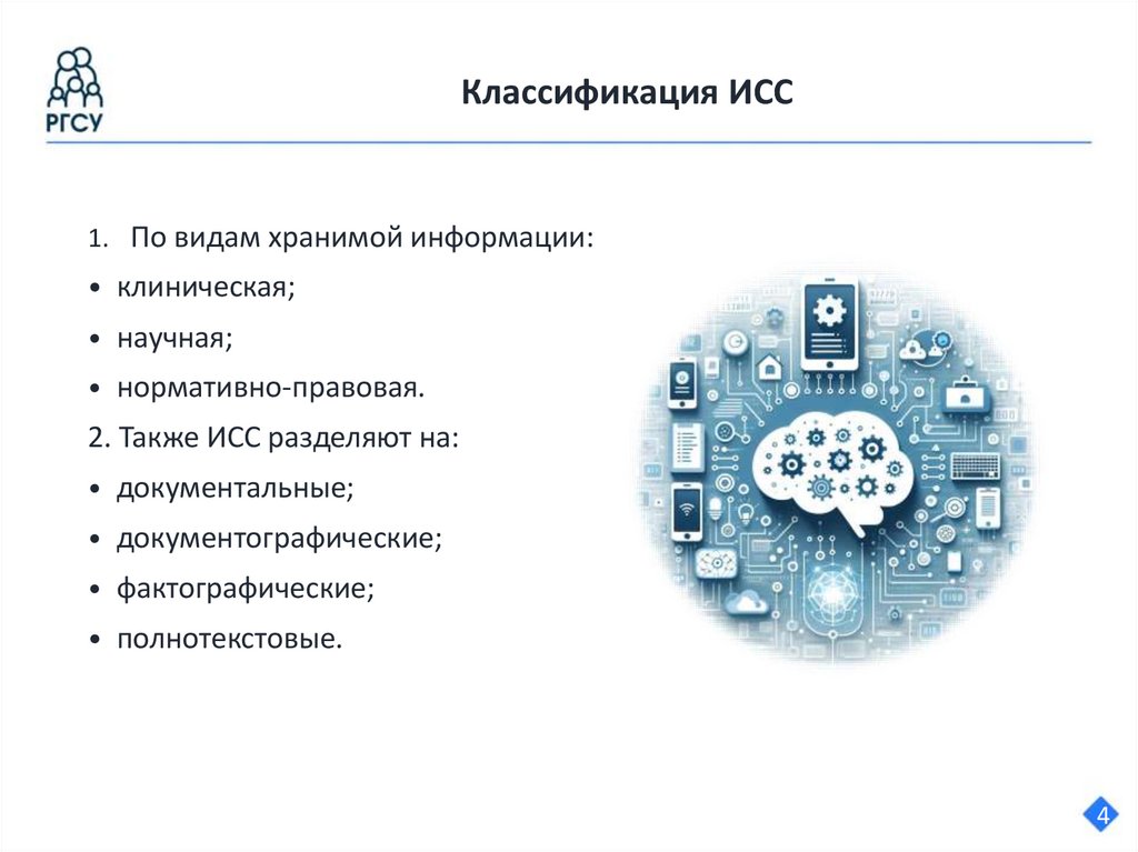 Классификация ИСС1. По видам хранимой информации: