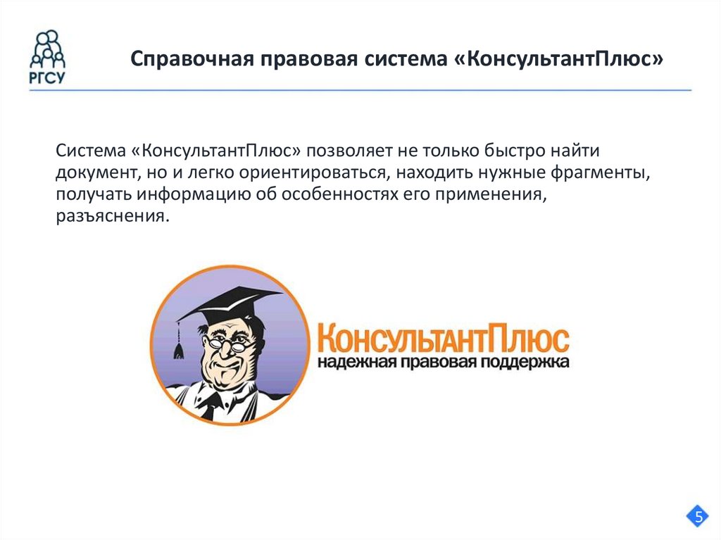 Справочная правовая система «КонсультантПлюс»Система «КонсультантПлюс» позволяет не только быстро найти