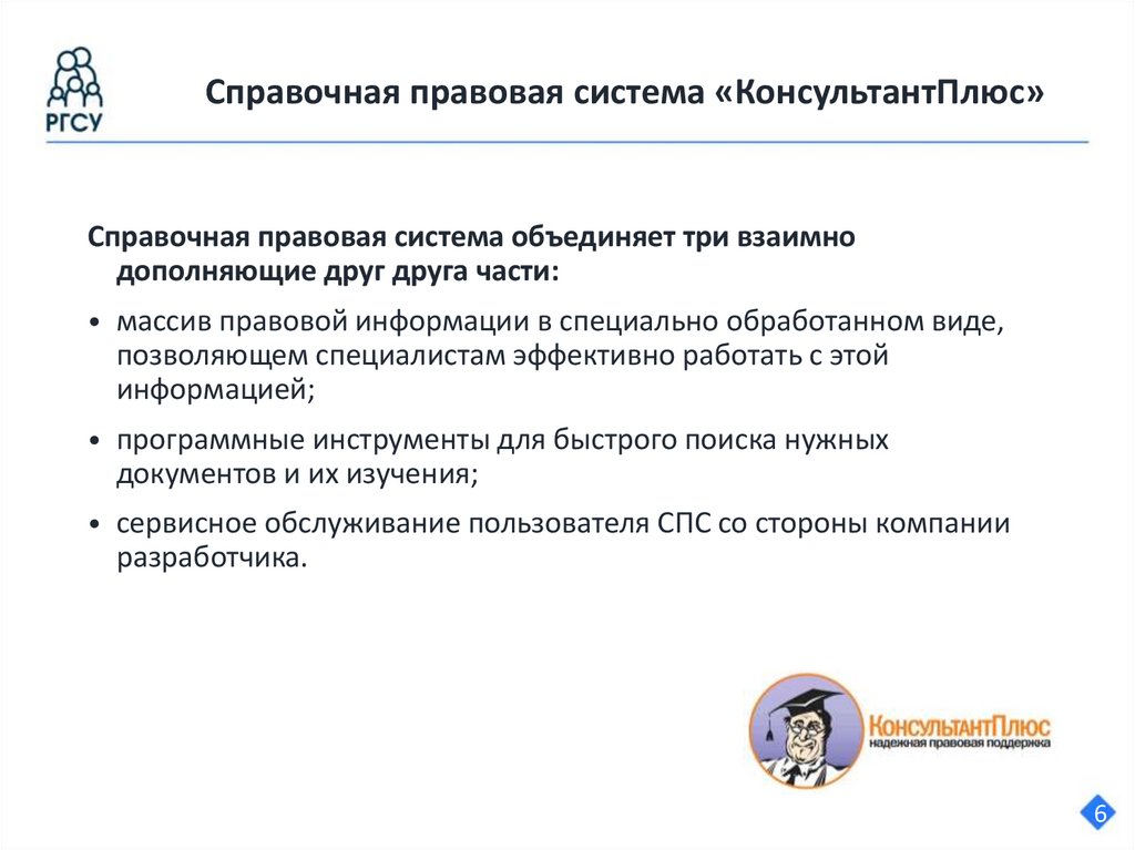 Справочная правовая система «КонсультантПлюс»Справочная правовая система объединяет три взаимно