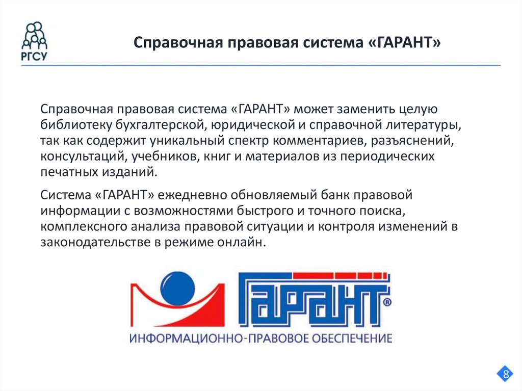Справочная правовая система «ГАРАНТ»Справочная правовая система «ГАРАНТ» может заменить целую